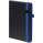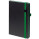 Ежедневник с полутвердой обложкой, выполнен из материала Waltz, черный АА, дополнен оранжевой резинкой с металлическим шильдом и ляссе.