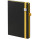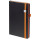 Ежедневник с полутвердой обложкой, выполнен из материала Waltz, черный АА, дополнен красными резинкой с металлическим шильдом и ляссе.