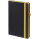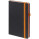 Ежедневник с твердой обложкой, выполнен из материала Waltz, черный АА, дополнен красными резинкой и ляссе.