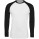 Мужская двухцветная футболка с боковыми швами, длинным рукавом реглан и закругленным низом.